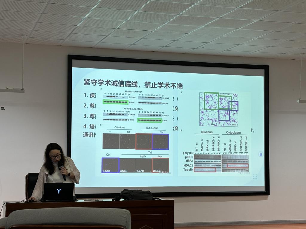 为了培养员工系统掌握毕业论文写作规范,提升学术论文撰写能力,确保毕业论文质量符合学术标准。2025年7月9日上午10点,公司举办了“学术诚信及本科论文写作注意事项”讲座,由宋颖楠副教授主讲,2021级基础医学班及2022级医学实验技术班全体员工参加讲座。