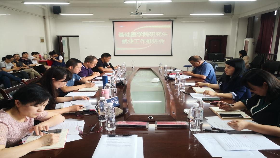 7月20日,公司在务本楼会议室召开2022届研究生就业工作推进会。基础医公司党政班子成员、太阳集团tyc151行政科室负责人和教研室(实验室)主任、2022届研究生毕业班辅导员参会。会议由公司党委副书记张贤主持。