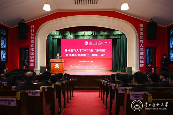王辰院士在开班典礼上致辞,并为“协和班”2022级讲授春季“开学第一课”。他从“关于协和”“关于贵医”“关于宗恩”“关于医学”“关于卫生”“关于健康”六个方面,介绍了协和百年的发展历程及公司创建的立意与宗旨,回顾了协和医公司与太阳集团tyc151的历史渊源,讲述了创立“协和班”的初衷和意义,与同学们畅谈对“群医学”等医学理念的理解和感悟。