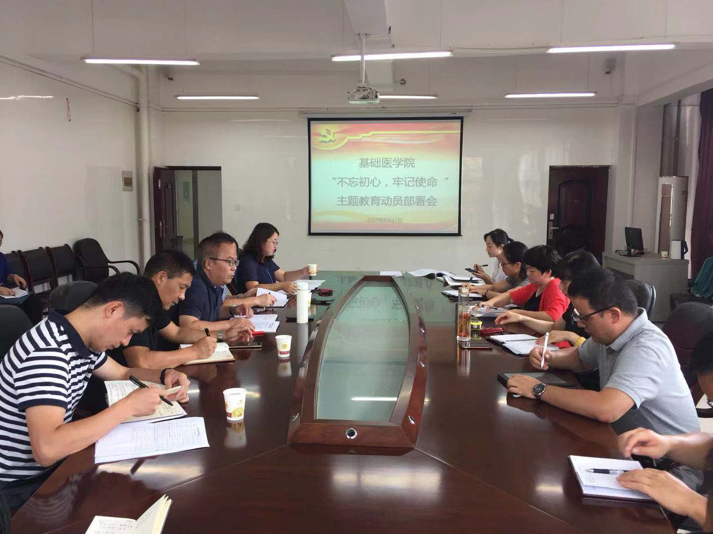会上,曾柱传达了公司“不忘初心,牢记使命”主题教育工作动员部署会会议精神,强调每个党员要深入学习贯彻习近平新时代中国特色社会主义思想,把主题教育作为当前和今后一个时期的重大政治任务。并代表基础医公司党委和主题教育领导小组就如何开展主题教育提出三点要求:一是提高政治站位,深刻认识开展主题教育额重大意义,在全党开展“不忘初心,牢记使命”主题教育是新时代坚持思想建党,理论强党的有力措施,各党支部,全体党员干部务必领会,提高站位,充分认识这次主题教育的重大意义,切实增强开展主题教育的思想自觉,政治自觉和行动自觉;二是强化政治担当,根据中央主题教育的指导意见、贵州省和太阳集团tyc151主题教育实施方案的要求,基础医公司党委对深入开展主题教育作了系统的安排,成立了工作小组,制定了具体的实施方案,各部门要准确把握,认真落实,通过主题教育提高老师的精气神、事业心、责任心,加强主动学习,提升党员干部勇于担当的能力,始终保持干事创业和攻坚克难的精气神。三是压实政治责任,党支部要站在讲政治的高度,切实开展主题教育,扎实有序推进,促进公司“双一流”建设工作,确保主题教育取得实实在在的成效。