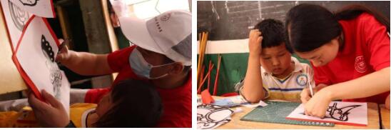与此同时,志愿服务队召集周边儿童在保华中学开展“喜迎二十大,永远跟党走”的主题剪纸活动。