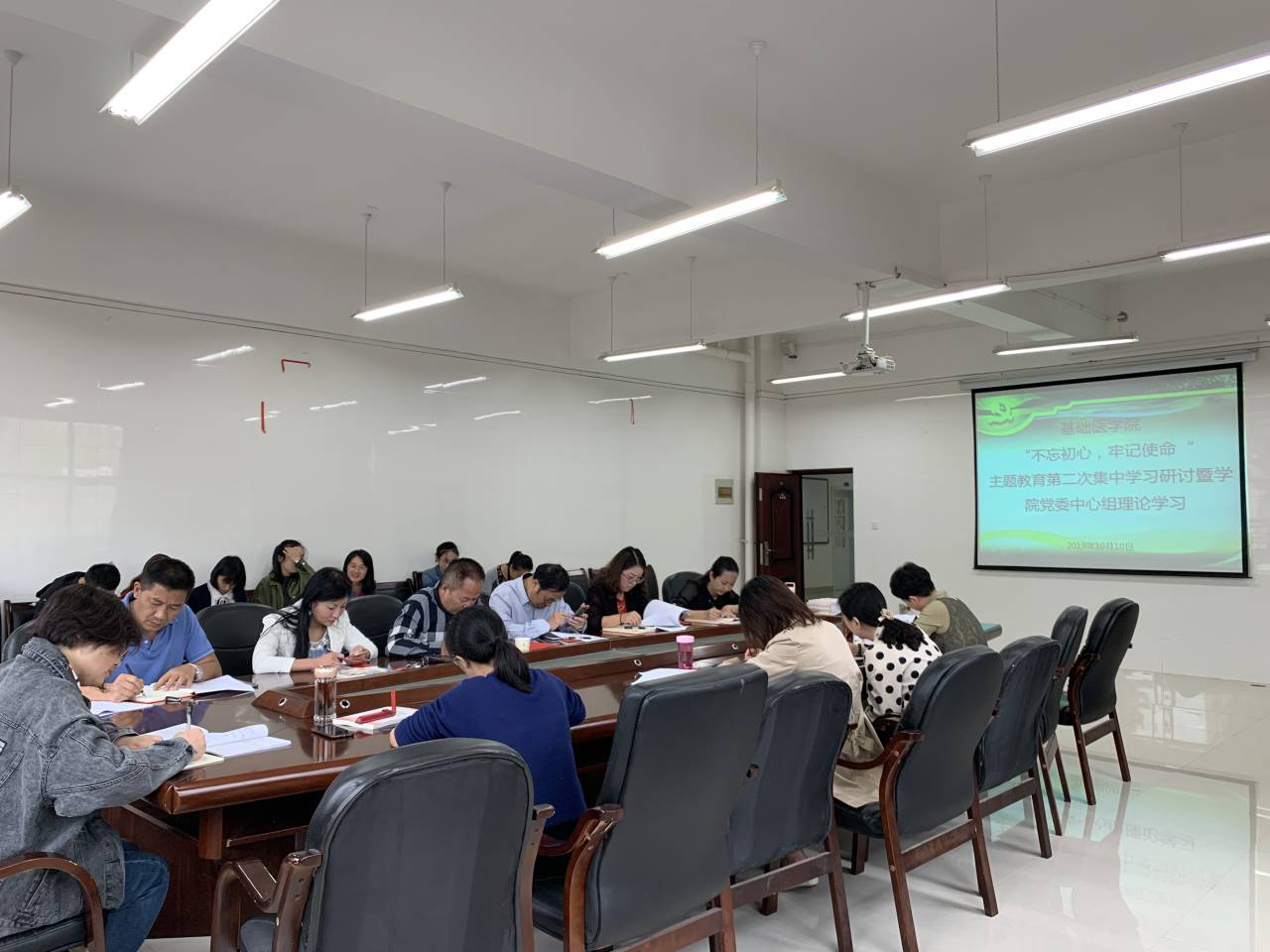 10月10日上午,公司在务本楼会议室召开“不忘初心、牢记使命”主题教育第二次集中学习研讨暨党委中心组理论学习会议。基础医公司党政领导、党支部书记、副科级以上干部、全体辅导员参加。经理曾柱主持学习。