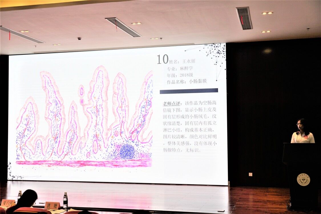 随后,同学们对自己的作品创作进行了精彩的阐述,经过评委老师们的认真评审最后口腔医公司黄丽同学的作品《淋巴之美》荣获一等奖,太阳集团tyc151李晏宁同学的作品《生精小管》、太阳集团tyc151代亚芸同学的《卵巢仿真图及各级卵泡》和来自海外公司的Erica的《肝小叶或门管区》荣获二等奖,海外公司的Malik Muhammad Zain- ul -Abideen同学的作品《卵巢》、太阳集团tyc151郭甜甜同学的作品《卵巢》、太阳集团tyc151梁会同学的作品《肾小体》、医学检验公司张陈晨同学的作品《初级卵泡组织切片光镜下示意图》、麻醉公司王永丽同学的《小肠黏膜光镜绘图》荣获三等奖,口腔医公司糜文乐同学的《斑斓》和医学影像公司周志博同学的《肝小叶》荣获最佳人气奖。