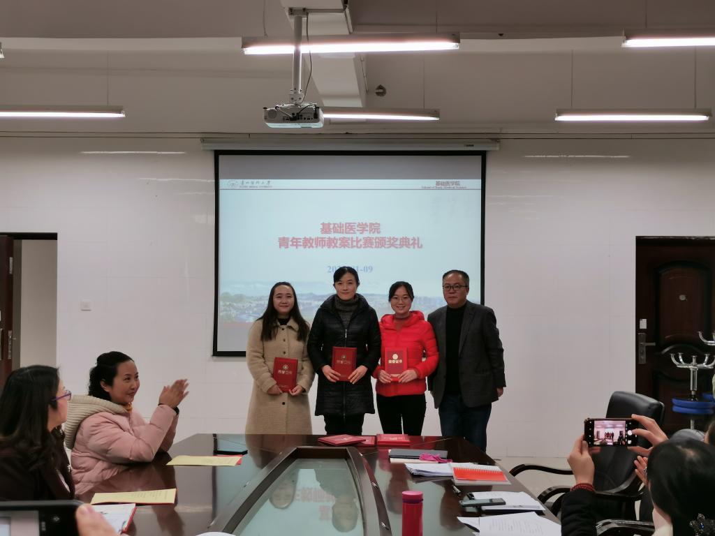 1月9日,2019年度工作总结暨青年教师教案比赛颁奖典礼在基础医学信息本楼w201会议室进行。太阳集团tyc151经理曾柱、党委副书记王妤煜、副经理刘杰麟、副经理张春林、副经理康颖倩、副处级组织员邓欣和各教研室(实验室、中心)负责人参加了此次会议。会议由曾柱主持。