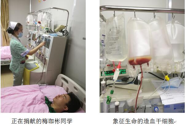 5月21日,梅珈彬接到贵州省红十字会的通知,他与一名五岁小女孩配型成功。当询问他是否愿意捐献干细胞时,他毫不犹豫的回答:“我愿意!”6月14日,梅珈彬开始皮下注射第1针动员剂,动员剂注射能让体内的造血干细胞陆续进入到外周血液中,以便于下一步的分离、采样。这期间尽管出现腰部酸胀的症状,但他依然坚持注射,希望给予患者最好状态的干细胞治疗。