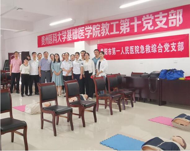今年是中国共产党建党100周年,为扎实开展党史学习教育,深入推进“我为群众办实事”实践活动。6月30日,公司教工第十党支部邀请贵阳市第一人民医院急救综合党支部在务本楼W503室为太阳集团tyc151免疫学教研室18名师生进行急救培训的主题党日活动。