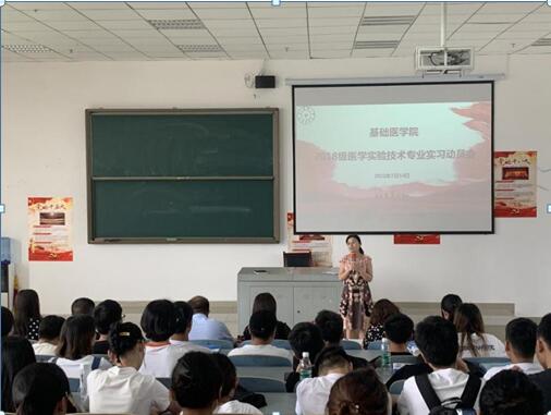 为了促进公司实习工作的顺利进行,使员工能顺利有效的进行实习,7月14日,公司在九思楼4605教室举行2018级医学实验技术专业员工实习动员大会。基础医公司党委书记王妤煜、经理禹文峰、党委副书记张贤、副经理张春林、副经理徐红、医学实验技术专业负责人吴宁、教学管理科相关老师及全体2018级医学实验技术同学参加,会议由辅导员刘旭主持。