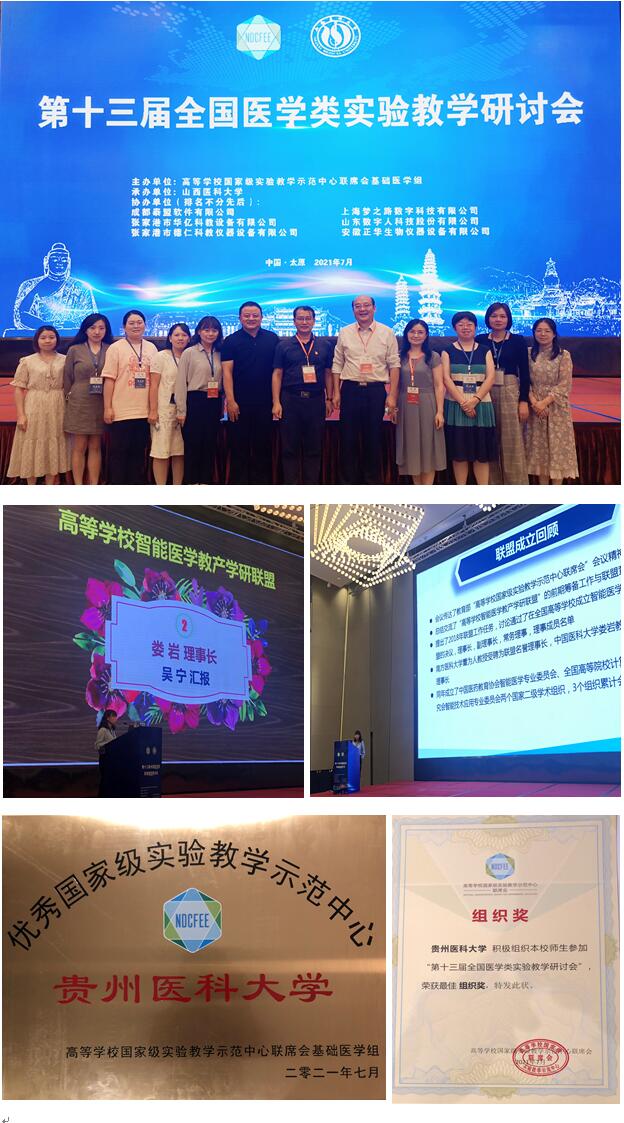 山西省教育厅高等教育处赵瑞处长、山西医科大学解军副董事长、教育部教育装备研究与发展中心李平副主任分别进行大会致辞;会议邀请知名专家,围绕课程思政、实验室生物安全、叙事医学、实验教学改革、国家教学成果奖申报、实验教学示范中心评估等方面进行专题报告,公司国家级实验教学示范中心吴宁主任受邀从联盟成立、所做工作、获得荣誉、未来工作计划等方面进行大会报告。会议同期,还举行高等公司医药类虚拟仿真实验教学项目、高等公司基础医学实验教学优秀论文等6场学术展示活动。在学术展示活动中,公司教师取得多项佳绩,陈峥宏、吴遵秋、迟茜文等团队分别获高等公司医药类虚拟仿真实验教学项目大赛一等奖,高等公司基础医学实验教学优秀论文一等奖,以及线上线下混合式实验教学创新设计二等奖,共计一等奖2项,二等奖2项;公司获得此次大会的最佳组织奖。