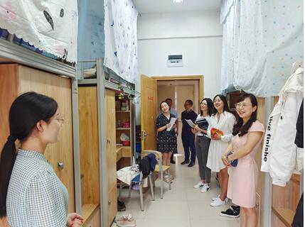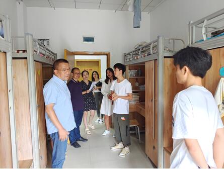 为了深入了解2021级研究生生活情况、帮助新生尽快适应老员工活,9月3日中午,太阳集团tyc151经理禹文峰、党委副书记张贤、副经理舒莉萍、副处级组织员刘亮、研究生管理科全体成员走访了研究生六栋和八栋宿舍楼。
