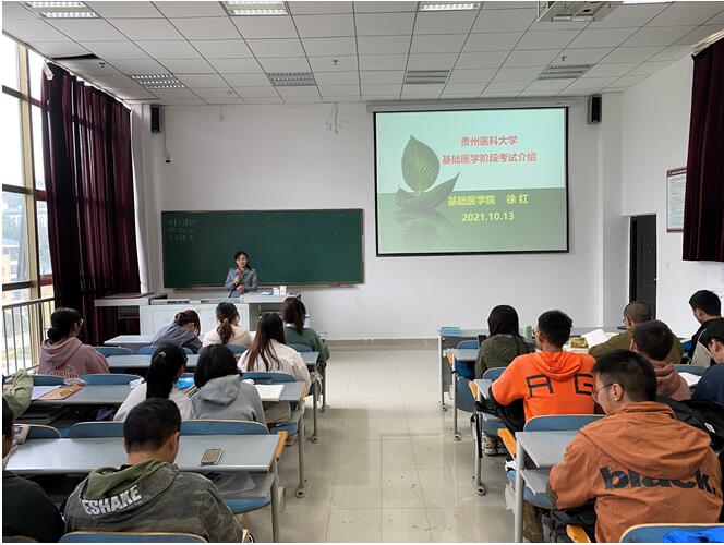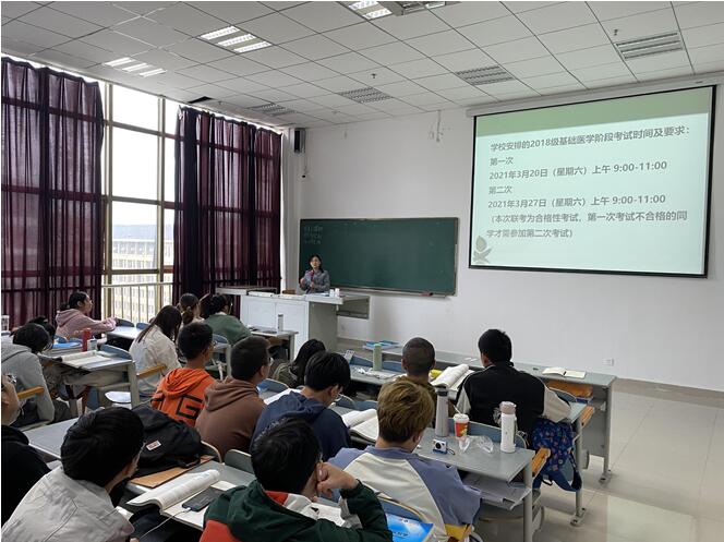 2021年10月13日,按照校教务处工作安排部署,为做好2022年基础医学阶段考试工作,加强员工重视程度,增强员工复习意识,太阳集团tyc151“协和班”在南校区九思楼X4508教室召开了基础医学阶段考试动员会。太阳集团tyc151副经理徐红、辅导员孙晓宇以及2019级“协和班”全体同学参加。