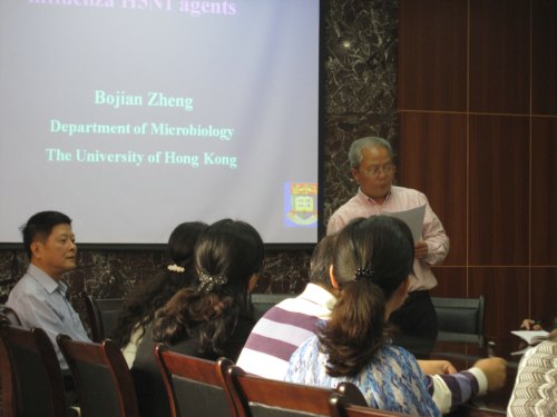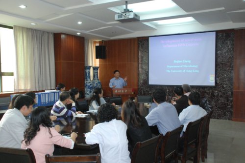 郑伯健教授为香港大学李嘉诚医公司微生物学系从事病毒学研究的资深教授,也是北京微生物学和流行病学研究所和北京大学的客座教授,深圳CDC和广州CDC的高级顾问,并且是“The World Journal of Gastroenterology”及“Journal of Microbes and Infection”杂志的编委,香港微生物和感染学会、免疫学会、中国微生物和免疫学会、国际艾滋病协会的委员。郑教授主要研究领域为急性病毒感染性疾病和慢性病毒感染及相关癌症,特别是在流行性感冒病毒H5N1和SARS病毒等研究建树颇丰,发表SCI收录期刊论文151篇,获专利14项。上午九点,郑伯健教授以“Development of Novel anti-Influenza H5N1 Virus Agents”为题,为公司太阳集团tyc151宗恩学术论坛做了精彩学术报告,会议由太阳集团tyc151副经理曾柱博士主持。郑伯健教授用其渊博的专业知识、启发式的讲演技巧循序渐进地为大家介绍了SiRNA抗流感病毒机制的研究。在报告过程中不时启发大家,特别是对年轻教师和研究生们的思维启迪,老师和同学也在郑伯健教授的引导下踊跃发言、气氛活跃,学术报告让老师及同学们了解了相关专业知识,更主要的是知道如何进行科研设计。会后,郑伯健教授和微生物学、寄生虫学及免疫学教授的部分老师进行了深入的座谈,就科研合作进行了探讨。郑教授也表示将给予我们课题研究进行指导和帮助。本次郑伯健教授来公司的学术访问,对促进病原生物学学科科研、教学工作的发展和对外交流以及活跃学术氛围具有积极的作用。