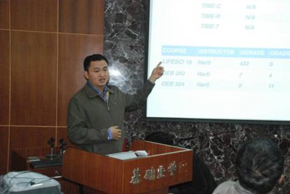 哈佛大学不仅执美国大学之牛耳,而且是世界最负盛名的大学之一,其影响力已超越美国国界,并以其卓著的旗下产业而享誉全球。2011年11月24日下午4:00,刚刚从美国哈佛大学回国的贵阳医公司分子生物学重点实验室副主任、图书馆副馆长杨明教授在“宗恩”博士论坛上为全院师生做了题为“哈佛大学教学一瞥”的学术讲座。杨教授在哈佛大学做访问学者一年,在短短的一年时间内,通过他犀利的视角、敏锐的观察力、幽默的言语,给我们展示了哈佛大学本科教学的精髓和人才培养的模式。