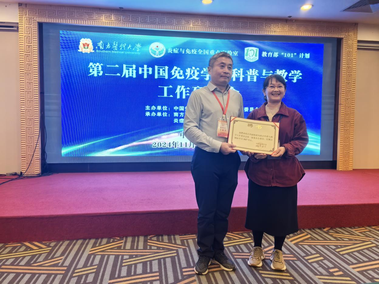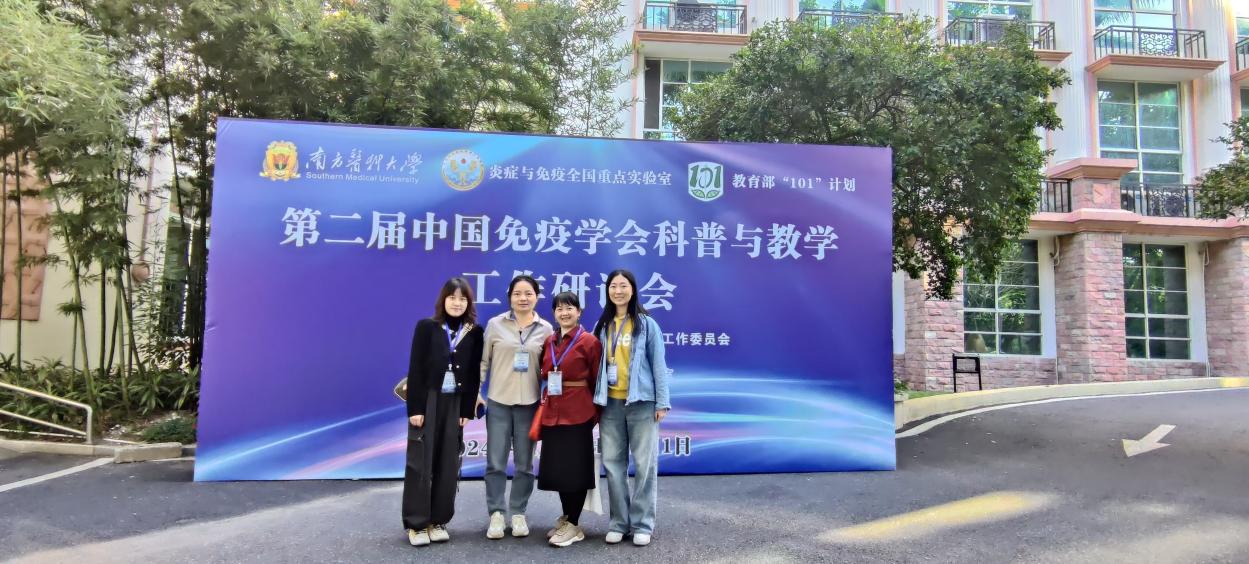 2024年11月29日至12月2日,中国免疫学会第二届免疫学教学与科普工作研讨会在广州召开。本次会议以分享最新的免疫学教学成果与科普经验为核心目标,解析《医学免疫学》人卫第八版教材编写架构,积极探讨免疫学教学与科普工作的新思路、新方法。公司太阳集团tyc151免疫学教研室主任商正玲副教授带队参加了本次会议。