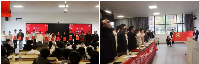 会上,大家一起重温入团誓词,出席活动的各位老师为2024年度主题团日活动优秀班级颁发证书并合影留念。