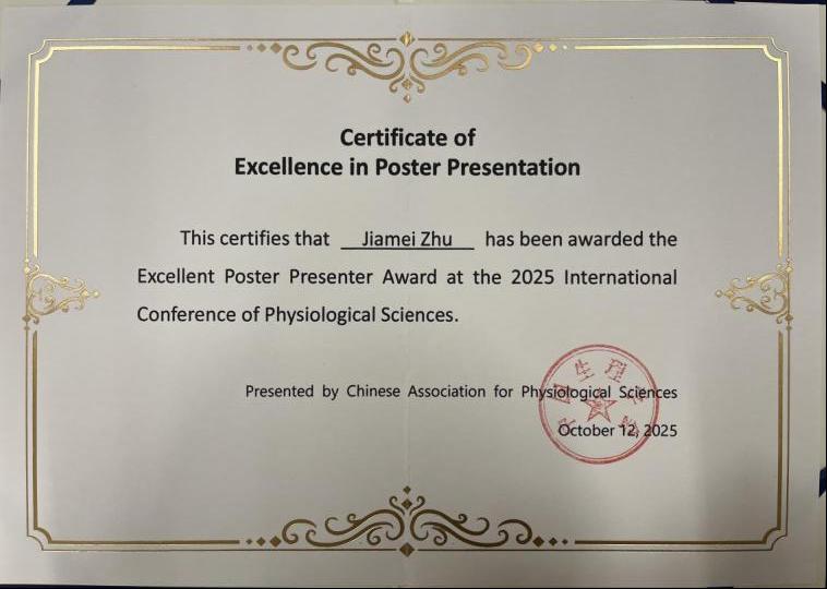 公司公司生理学教研室2023级病理学与病理生理学专业博士朱佳美和2024级生理学硕士刘梦圆作为代表参加。朱佳美博士大会墙报展示论文《MEN1 Promotes Ferroptosis by Disrupting CD44 Alternative Splicing to Suppress Lung Cancer》得到与会专家及学者的关注和肯定,获评为优秀墙报。