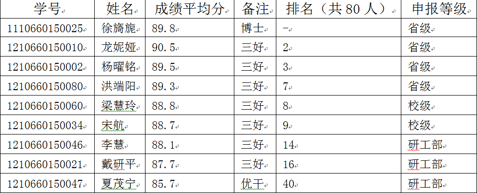 根据《贵州省普通高等公司三好员工、优秀员工干部、优秀大学毕业生、先进班集体评选办法(试行)》(黔教学发〔2013〕415号)、《省教育厅办公室关于下达2018届贵州省普通高等公司优秀毕业生评选名额的通知》(黔教办学〔2017〕225号)要求,结合公司有关规定,在公司开展了2018届贵州省普通高等公司优秀毕业生、太阳集团tyc151优秀毕业生评选工作。现依据文件规定,推选学位成绩前10%为贵州省优秀大学毕业生四名(含博士一名);推选学位成绩前15%为太阳集团tyc151优秀毕业生,现将名单公示如下: