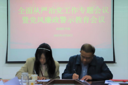 肖绚要求,要压紧压实责任,确保任务落实,加强监督考核,严肃追责问责。全面推进从严治党一是要加强党的政治建设,坚决做到“两个维护”;二是深入学习党的二十大精神,加强政治理论学习,加强《党章》学习,不断提高政治素养,用理论武装头脑;三是加强基层党组织建设,进一步规范“三会一课”和主题党日等相关组织活动。四是深化党风廉政建设,聚焦“关键少数”,重视“绝大多数”,从严从实加强自身建设,严格执行中央八项规定精神,切实纠治形式主义、官僚主义。五是落实意识形态工作,进一步压实意识形态责任,抓牢意识形态研判,严把意识形态审批。六是做优新闻宣传,重视宣传、懂得宣传、及时宣传,提量增质,加强内容挖掘“深度”,强化新闻宣传的力度和实效,着力讲好新时代公司故事。党风廉政建设永远在路上,希望大家在工作中要做到慎独、慎微、慎言、慎行,心怀敬畏、不忘初心、爱岗敬业、潜心治学、虔诚问道、悉心育人,为促进公司教育高质量发展贡献自己的力量,为奋力谱写“百年贵医”建设高质量发展新篇章提供坚强保证!