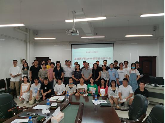 为落实好公司“稳就业,促就业”相关工作要求,引导员工积极就业,6月28日上午, 公司在务本楼W201会议室召开 “不负韶华·逐梦前行”—2020届毕业生座谈会。公司经理曾柱、党委副书记王妤煜、副经理刘杰麟、副经理康颖倩、副经理张春林、副处级组织员邓欣、员工科分团委、教学科研管理科负责人、医学实验技术专业负责人、毕业班辅导员以及2016级医学实验技术毕业生参加座谈会,会议由辅导员周儒主持。
