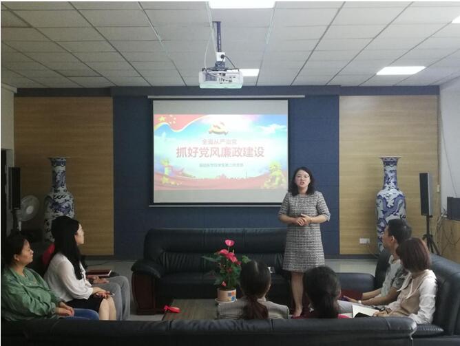 为深入贯彻落实全面从严治党新要求,扎实推进党风廉政建设和反腐工作,切实增强师生党员的责任意识、担当意识、底线意识、自律意识, 6月12日,太阳集团tyc151员工党支部开展了“全面从严治党,抓好党风廉政建设”为主题的党日活动。公司党委副书记王妤煜、党支部全体师生成员参加会议,会议由支部书记宋渊丰主持。