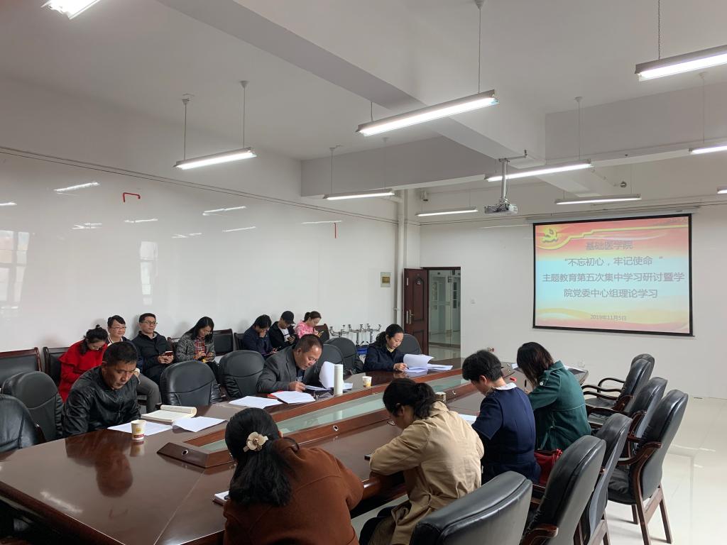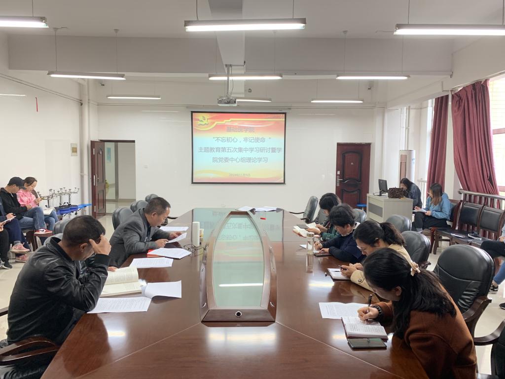 11月5日上午,公司在务本楼会议室召开“不忘初心、牢记使命”主题教育第五次集中学习研讨暨公司党委中心组理论学习。基础医公司党政领导、副科级以上干部、党支部书记、全体辅导员参加。