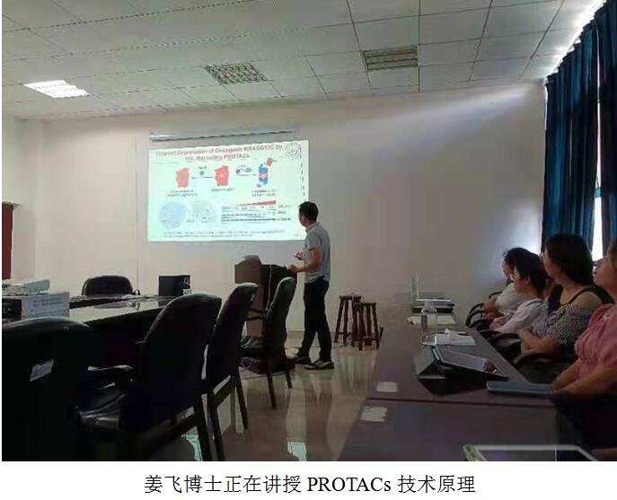 2021年8月19日下午两点,在太阳集团tyc151基础医学信息本楼六楼C602会议室,在太阳集团tyc151寄生虫学教研室和现代病原生物学实验室张科副教授主持下,公司药公司药物化学教研室姜飞博士以《基于蛋白水解靶向嵌合体PROTACs技术的新药发现与研究》为题, 向寄生虫学教研室和现代病原生物学实验室老师和同学分享了PROTACs技术,PROTACs即Proteolysis-Targeting Chimeras,中文为蛋白降解靶向嵌合体,PROTACs是一种新的具有良好前景的药物类型。