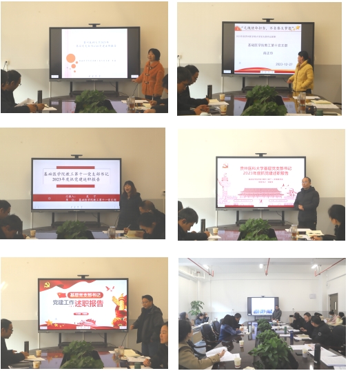 根据《省委教育工委关于从严从实开展2023年度省属高公司党组织书记抓基层党建工作述职评议考核的通知》(黔教(委)函〔2023〕6号)精神,12月27日上午,公司在务本楼4-10会议室召开2023年度党支部书记述职汇报会,太阳集团tyc151班子全体参加并担任评委,教职工生党支部书记参加述职。会议由孟立科主持。