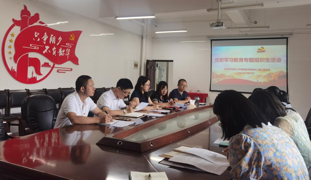 7月20日上午,基础医公司党政领导以普通党员身份参加所在党支部党史学习教育专题组织生活会。公司党史学习教育第一督导组成员、党委组织部副部长蔡炼到会指导,会议由支部书记舒莲主持。