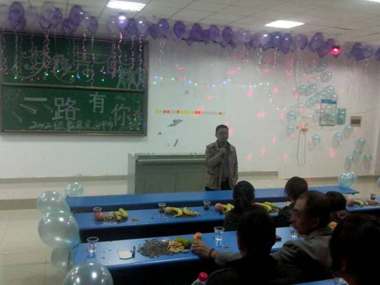 青春是爱的乐谱,跳动的一个个音符是梦飞扬的翅膀。为感谢公司领导和老师的关心,感谢新校区的建设者与见证者们以及迎接2013级新生入驻新校区,太阳集团tyc1512012级临床定向甲班于2013年9月27日晚19:00在1303教室举办了“梦想青春 一路有你”的主题晚会。基础医公司党委副书记廖兴江亲临现场,员工科科长汤武庆、2012级辅导员石静、苗建峰、郑维俊、董然然以及2013级辅导员王余生、黎冉出席本次活动。